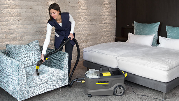 ソファーやカーペットなどの布製品を洗浄する、ケルヒャー業務用カーペットリンスクリーナーです。