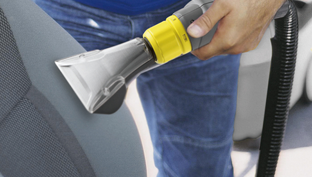 自動車のシートやソファーやカーペット等の布製品に洗浄剤を吹き付け、バキューム機能で汚れと洗浄剤を吸い取ります。
